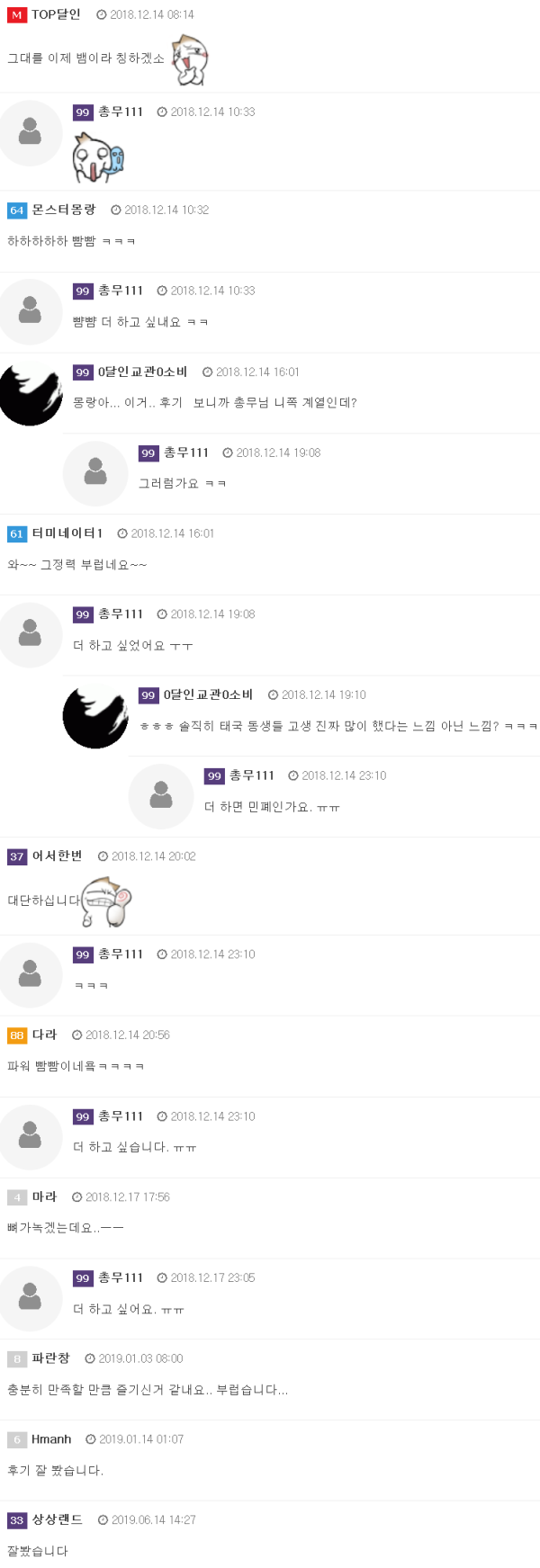아토미를 사장님이 알아서 보내시고조금 있다가 팸리 등장 하심니다. ㅋㅋ바로 체크그상태로 막 쑤셔줍니다.이거 해보세요. ㅋㅋㅋ그렇게 또 온몸에 땀이 비오듯 흐릅니다. 개운해요. 진짜 마인드가 좋을까 그럼 좋다. 동샹들 힘차게 풀어 줍니다.그 …