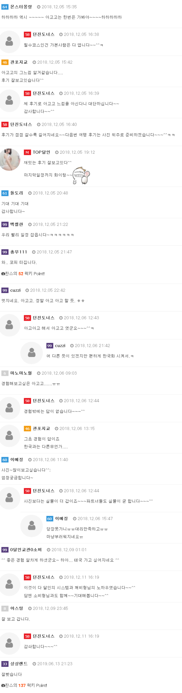 에피소드-5안녕하세요. 던진도너스입니다.갑자기 예고없이 훅 바빠져서 도저히 후기 작성할 시간이 나질 않아~~틈틈히 그래도 매일 달인 홈피는 들러서 글도 보고 댓글도 달고 지냈었습니다~~ㅎㅎ이제 마지막날 한국으로 돌아가는 날이네요~~벌써 지난주에 작성했던 후기가 생각이 …