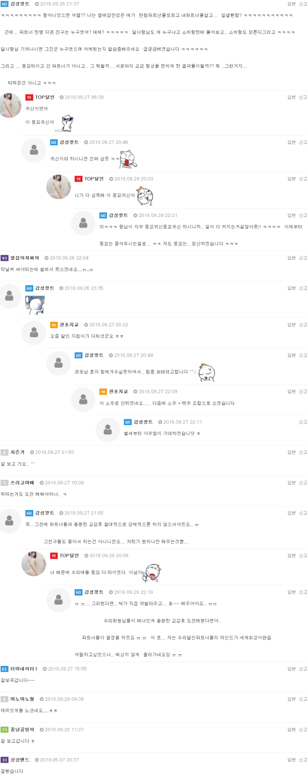 전 후기에 말씀드린대로 파트너 교체가 있었습니다.시간을 거슬러 올라가 아침 일어났을때 담배 한대 피고 있으니 감성이가 나오더군요.같이 수영장에서 담배 한대 빨면서 이런저런 이야기를 했습니다.서로 만족감을 표출하던중 뜬금없이 파트너를 교체할까 고민중이라는 감성이.지금 파…