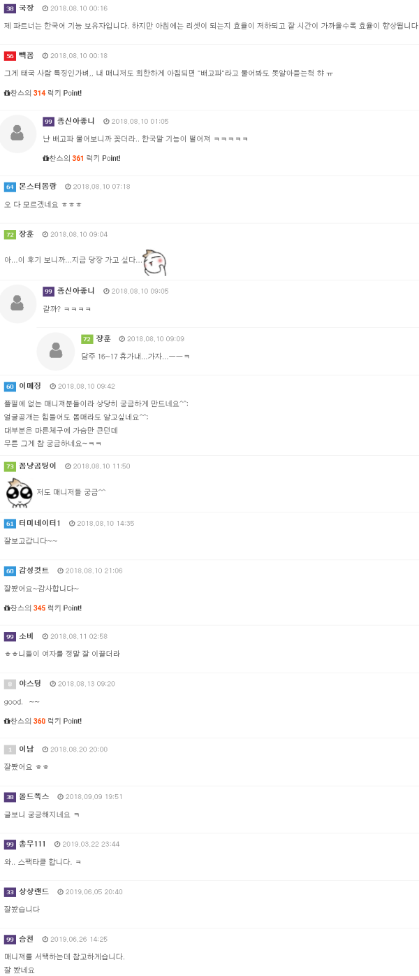 # 매니저 사실 개인 별로 매니저와의 만족도는 서로의 취향, 두사람의 컨디션, 호감도 기타 등등의 변수에 따라 달라질 수 있습니다.하지만 더 중요한 것은 일행들과의 분위기, 인원 조합과 구성, 배려, 어우러짐 등등에 따라서플러스/마이너스의 요인이 더 크게 발생…