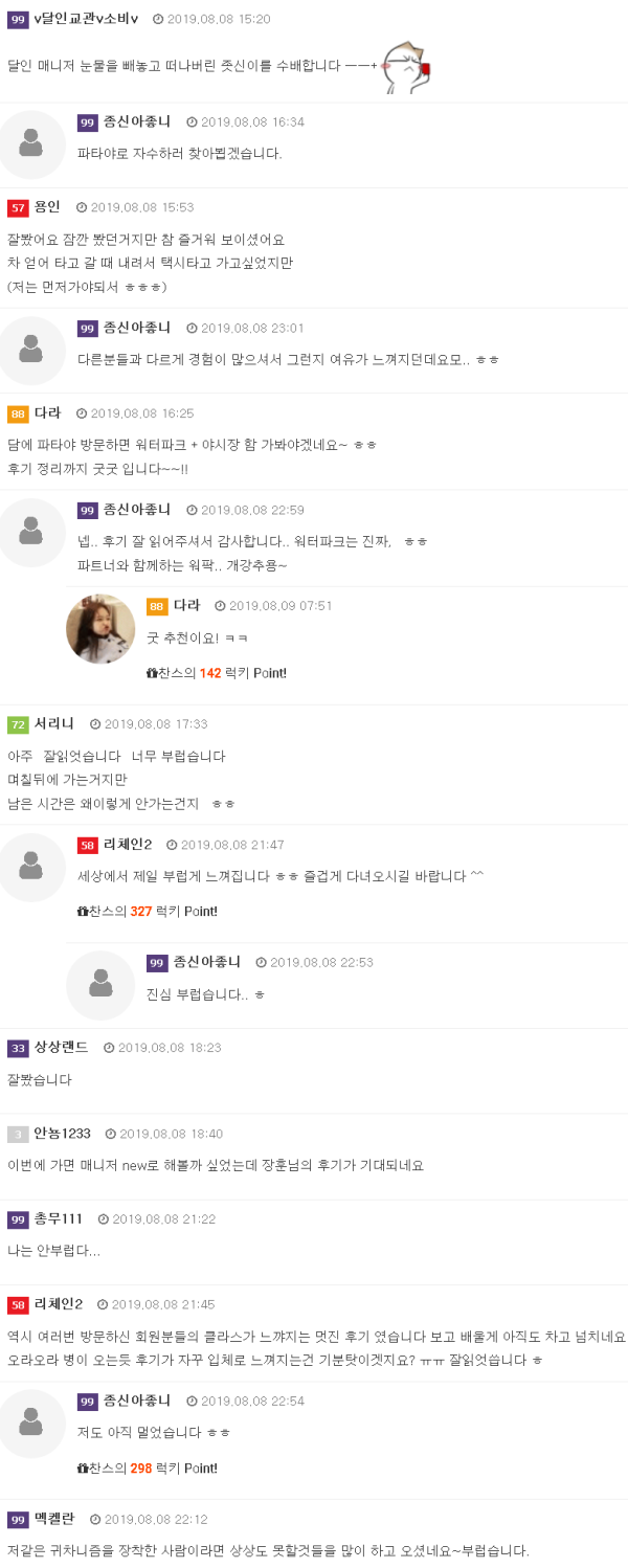 다녀온곳 및 파트너 평..지극히 개인적인 생각이오니 참조만 하시길 바랍니다.아이스파 - 사우나 & 마사지 파트너들이 크림을 발라주는데 첫날 가거나 둘째날 가면 좋을거 같습니다 첫날갈시 아직 서먹한 분위기를 없애줄 스킨십.. 여기서 친밀감 향상 …