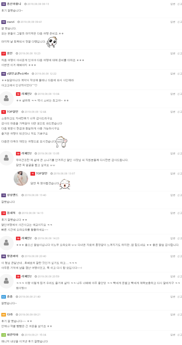 서장.안녕하세요 이렇게 후기로 나마 인사드리게된 리체인입니다.하지만 일절 눈팅외엔 코멘트 조차 남기지 않고 있어서 닉넴을 말씀드려도 잘 모르셧을거라 생각 되어 이렇게 나마 인사드립니다.막상 다들 다녀오신 후기를 부러운 마음으로만 지켜보다 이렇게 직접 쓰게되니 참 복잡…