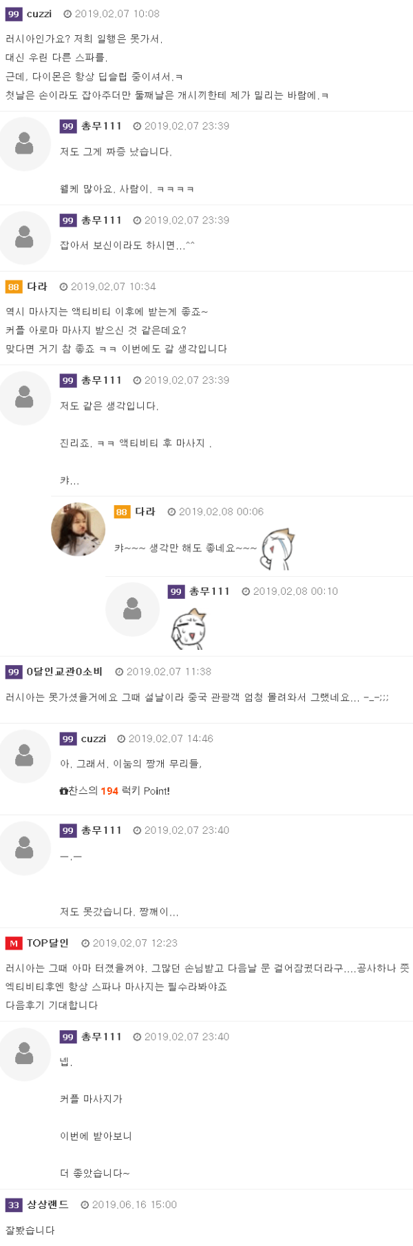 다른 팀도 아시겠지만이번에... 예약이 좀 힘들었죠. ㅋ관광객이 많아서 그렇답니다.사장님 그거 맞추신다고 고생 많으셨죠.우여곡절 끝에스파도 가고. 커플 마사지도 갔습니다.jj가 알려주더군요.카플마사지 가서 마사지 많이 받는법. ㅋㅋㅋ전 꼼냥이 더 좋은데..jj는 마사지…
